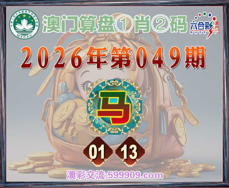049期:『澳门算盘』 ①肖②码】【01.13】开:马13